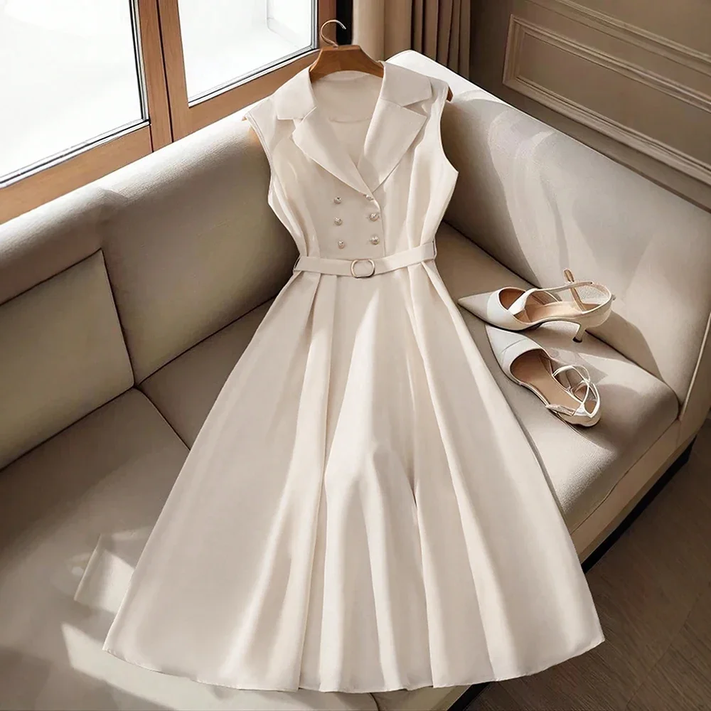 Rafiah Boutique Women's Dresses Summer French Elegant Flounce A-Line Midi Vacation Streetwear Long Sleeve Shirt Collar Dresses